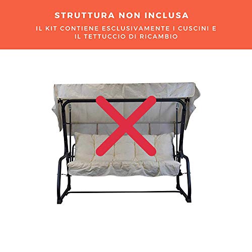 TECNOWEB Kissen für 3SitzerHollywoodschaukel inklusive Ersatzteil auch das passende Dach 100 % Made in Italy ideal für den Außenbereich (Gärten und Terrassen) Rahmen nicht im Lieferumfang enthalten.