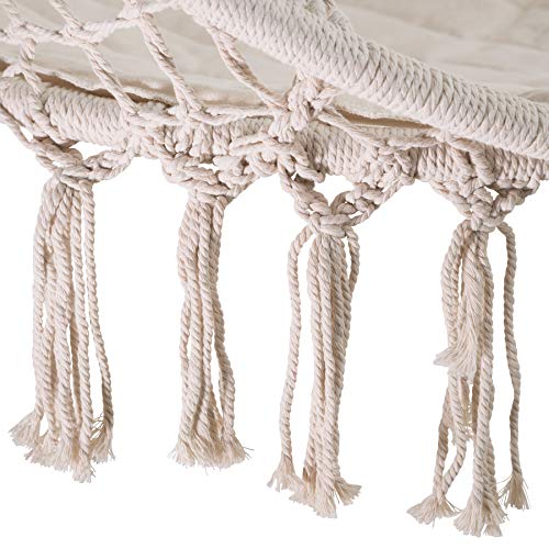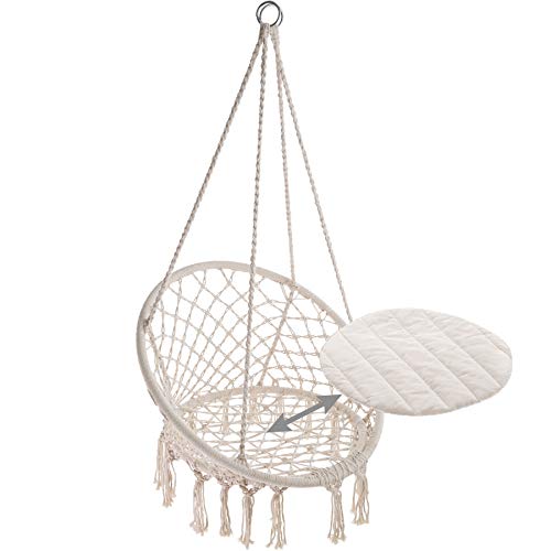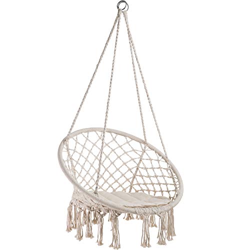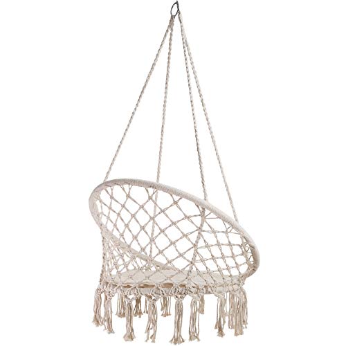 Ruhe über den Stress des Alltags im komfortablen Hängesessel von TecTake. Das leichte Baumwollgewebe und das weiche Sitzkissen passen sich perfekt an die Körperform an. Neben dem Komfort bietet die robuste Schaukel einen eleganten Look mit dekorativen Bommeln unterhalb der Sitzfläche anstelle ein noch größeres Wohlfühlgefühl. Durch das geringe Gewicht kann der Sessel fast über und über hin mitgenommen werden. Genießen Sie ein aufregendes Buch oder ein gutes Glas Rotwein, indem Sie sich in die Natur in Ihrem kuscheligen Hängesessel von TecTake schaukeln.