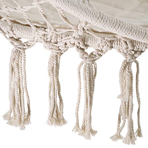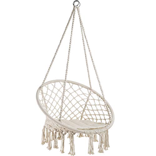 Schwebe entspannt unter Einsatz von dem Alltagsstress im bequemen Hängesessel von tectake. Das leichte Baumwollgeflecht unter anderem das weiche Sitzkissen passen sich perfekt der Komposition Deines Körpers an. Angrenzend dem Komfort bietet die robuste Korbschaukel mittels den Zierquasten an der Unterseite alias eine ansprechende Optik An Stelle ein noch größeres Wohlgefühl. Auf Grund sein geringes Gewicht lässt sich der robuste Schwebesitz fast überallhin wegwischen. Genieße ein spannendes Buch oder einen guten Rotwein beschwingt mitten in der Natur im kuscheligen Hängesessel von tectake.