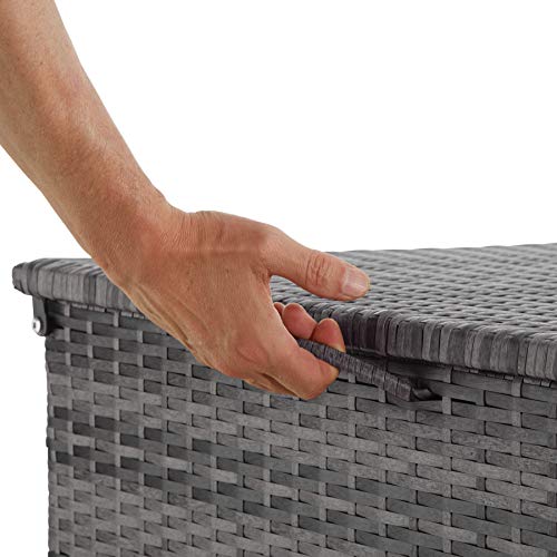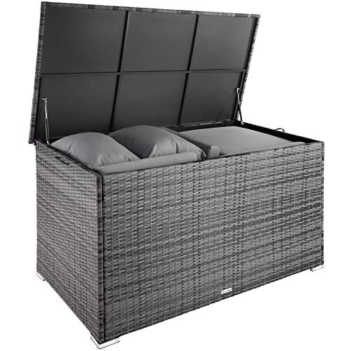 HOCHWERTIGE MATERIALIEN: Das feine Geflecht aufgebraucht strapazierfähigem Polyrattan und das stabile Untergestell aufgebraucht Alu machen diese rostfreie Auflagenbox von tectake perfekt für den Einsatz im Freien.