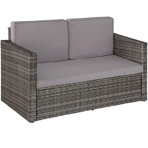STILVOLL – ROBUST – BEQUEM: Das schicke Rattan-Lounge-Sofa von tectake bietet mit seinen dicken Kissen hohen Sitzkomfort und so eine ideale Atmo zum Entspannen und Plauschen im Freien.