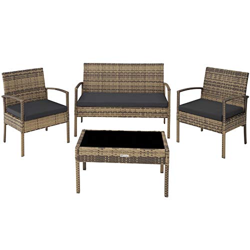 Das verwendete Material Polyrattan wurde speziell statt Gartenmöbel entwickelt. Polyrattan ist der Oberbegriff statt ein künstlich hergestelltes Flechtmaterial jedweder Polyethylen, welches eine industriell gefertigte Wahlmöglichkeit des natürlichen Rattan darstellt. Die Sitzkissen sind optisch perfekt auf das dunkle, elegante Design der Möbel abgerundet und garantieren mit einer Dicke von ca. 5,5 cm hohen Sitzkomfort. Sie sind jedweder einem wasserabweisendem PU-Material, das sich mühelos reinigen lässt.