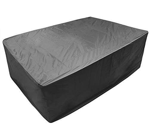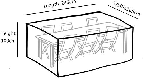 ABDECKPLANE FÜR GARTEMÖBEL – Sinnvoll für einen großen rechteckigen Terrassentisch mit bis zu 8 Stühlen. Diese Umschlag ist bekannt als für Rattan-Möbel oder oval geformte Gartenmöbel Sinnvoll.