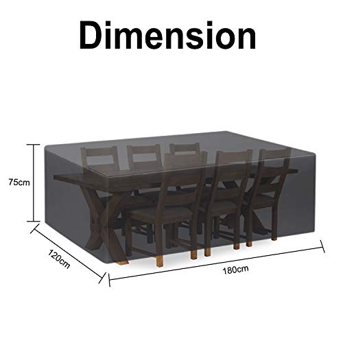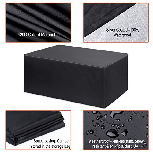 【Hochwertiger & Robuste Material】Das beständige, hochdichtem Oxford 420D Polyester-Gewebe mit innenseitiger verdickte Silber-Beschichtung und versiegelten Nähten sorgt für einen langlebigen Schutz Ihrer Außenmöbel. Die Gartenmöbel Schutzhüllen ist wasserdicht, schneesicher, staubdicht und UV-beständig.