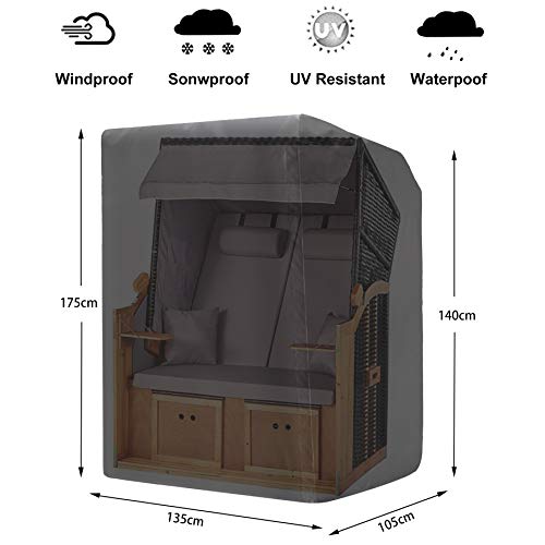 【Strandkorb Schutzhülle Größe】 – Passt für Strandkorb und andere Gartenmöbel mit maximalen Abmessungen von Vorderhöhe 175 cm x Rückenhöhe 140 cm x Breite 135 cm x Schlund 105 cm.
