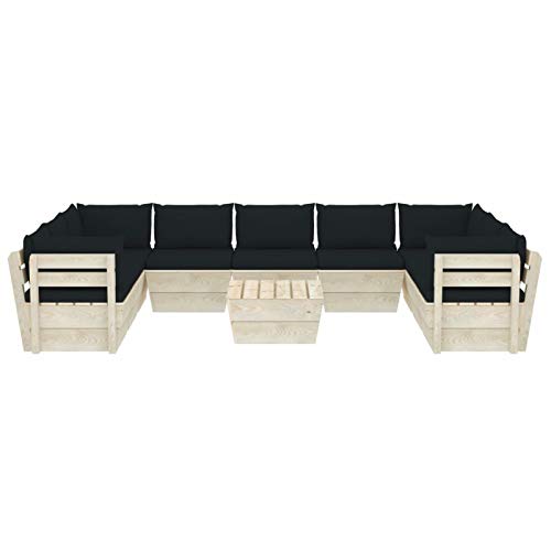 Das Garten-Lounge-Set besteht alle imprägniertem Fichtenholz und ist dadurch langlebig und erschütterungsfest. Diese Terrassen-Sofagarnitur verfügt über eine solide Konstruktion und ist wartungsarm.