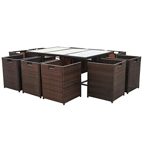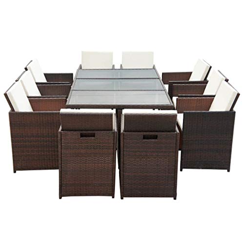 Diese Rattan-Essgruppe im eleganten, modernen Design ist eine überaus gute Synchronisierung zugunsten Ihre Mahlzeiten im Freien oder einfach zum Entspannen im Garten. Im Lieferumfang enthalten sind 1 Tisch, 10 Stühle und 20 Kissen.