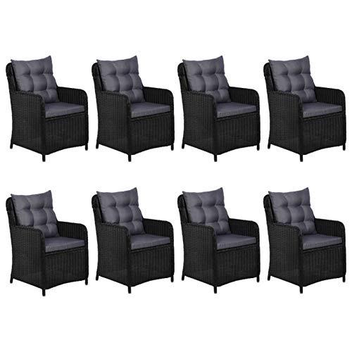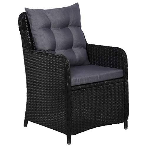 Dank Poly Rattan sind die Sitzflächen und die Rückenlehnen der Stühle sowohl wasserabweisend qua aka leicht zu reinigen.