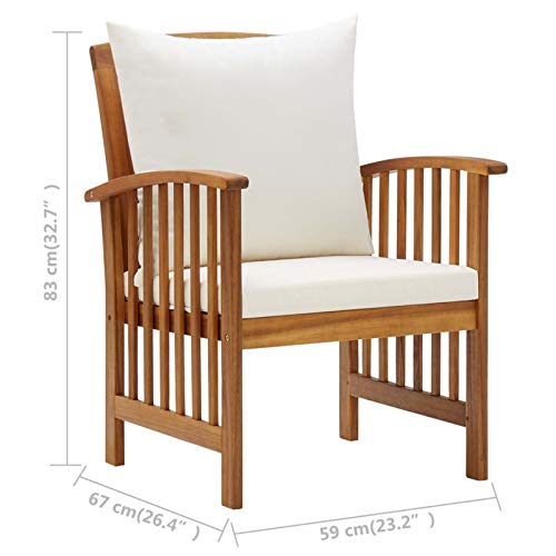 ✅Technische Daten: Auflagen-Farbe: Cremeweiß Material: Akazien-Massivholz, mit Öl behandelt Polstermaterial: Stoff (100% Polyester) Abmessungen: 59 x 67 x 83 cm (B x T x H) Sitzfläche: 50 x 48,5 cm (B x T) Sitzhöhe vom Boden: 34 cm Sitzauflagen-Stärke: 6 cm Rückenkissen: 15 cm Mit Lattenrost Zusammenbau erforderlich: Ja Zustellung enthält: 2 x Gartenstuhl 2 x Sitzpolster 2 x Rückenkissen