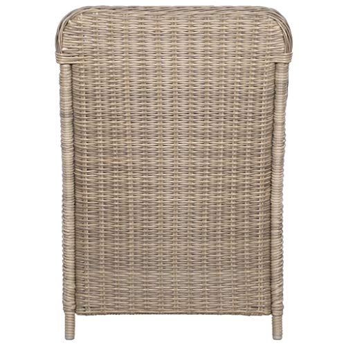 Technische Daten: Farbe: Braun und Dunkelgrau Material: PE (Polyethylen) Rattan & pulverbeschichteter Stahlrahmen Polsterbezug: 100% Polyester Sesselmaße: 64 x 65 x 90 cm (B x T x H) Sitzbreite: 54 cm Sitztiefe: 49 cm Sitzhöhe vom Boden (ohne Polster): 41 cm Armlehnenhöhe vom Boden: 54 cm Die Belieferung umfasst 2 Sessel und 2 Sitzpolster