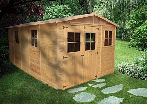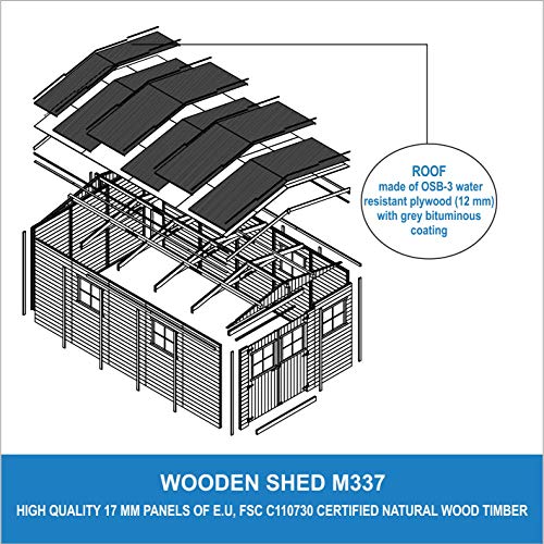 Holz Gartenschuppen – Abstellkammer mit Fenstern – H226x516x324 cm/15 m² Naturholz-Shiplap-Schuppen – Gartenwerkstatt – Fahrrad- Geräteschuppen TIMBELA M337