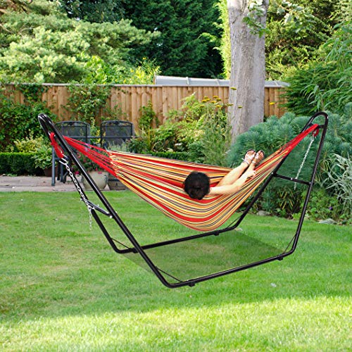 Todeco – Hängematte, Hängebett – Kapazität: Für 2 Personen – Hängemattenmaterial: Baumwolle – Rot, mit Typ H Ständer…
