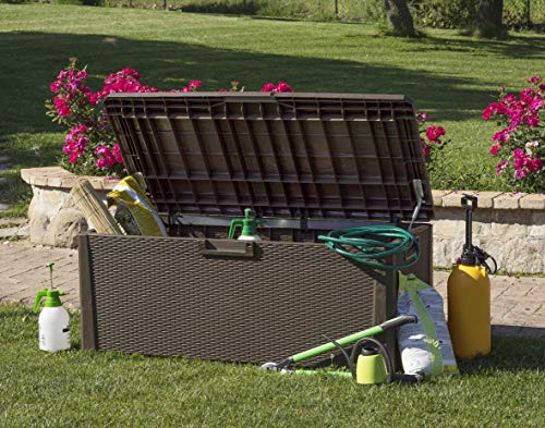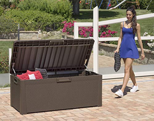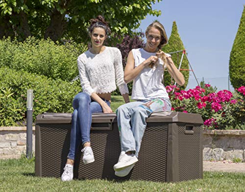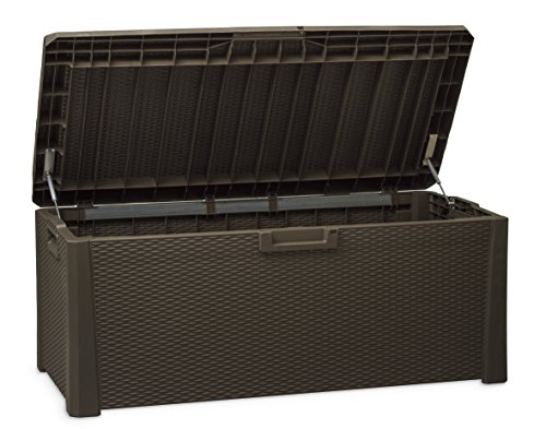 Mehrzwecktruhe unter Zuhilfenahme von Kissen. Es bietet bequemen Ort anstelle 2 Personen. Permanent vis-à-vis niedrigen Temperaturen, Korbdekoration. Automatischer Öffnungsmechanismus. Fassungsvermögen 560L. Fon anstelle ein Vorhängeschloss. Montagezeit: 15 min. unter Zuhilfenahme von Werkzeug. Dim. cm 148x72x65 h.