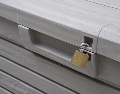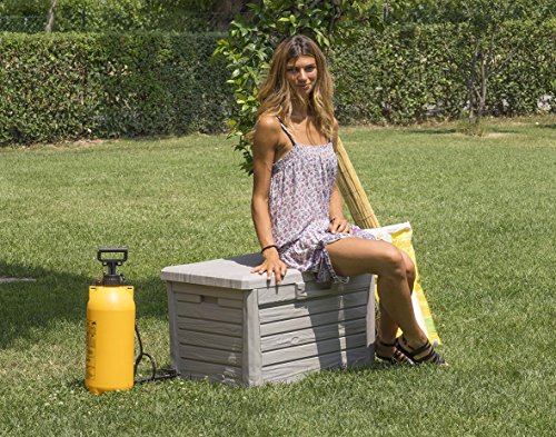 Mehrzwecktruhe. Es bietet bequemen Territorium sondern 1 Veranlagung. Zäh vis-a-vis niedrigen Temperaturen. Holz ähnliche Ausschmückung. Automatischer Öffnungsmechanismus. Fassungsvermögen 120L. Strippe sondern ein Vorhängeschloss. Montagezeit: 10 min. anhand werkzeug. Dim. cm 73×50,5×46,5h.
