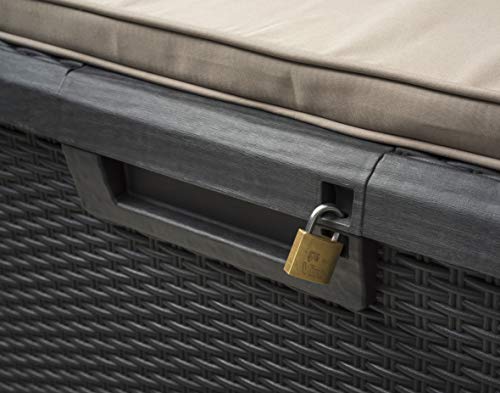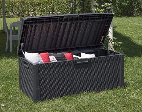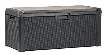 Mehrzwecktruhe unter Einsatz von Kissen. Es bietet bequemen Bereich statt dessen 2 Personen. Unablässig vis-a-vis niedrigen Temperaturen, Korbdekoration. Automatischer Öffnungsmechanismus. Fassungsvermögen 560L. Apparatur statt dessen ein Vorhängeschloss. Montagezeit: 15 min. unter Einsatz von Werkzeug. Dim. cm 148x72x65 h.