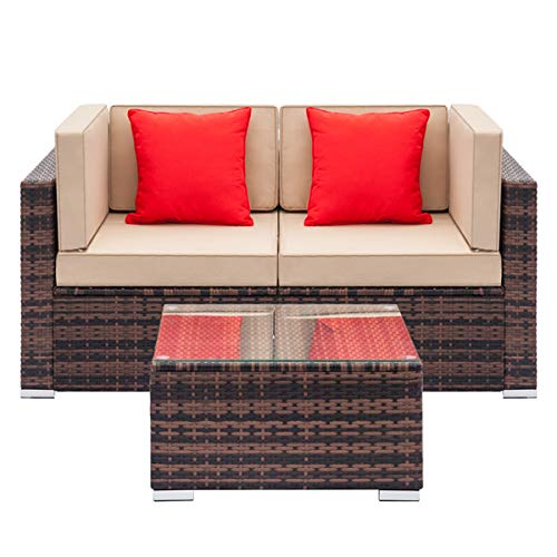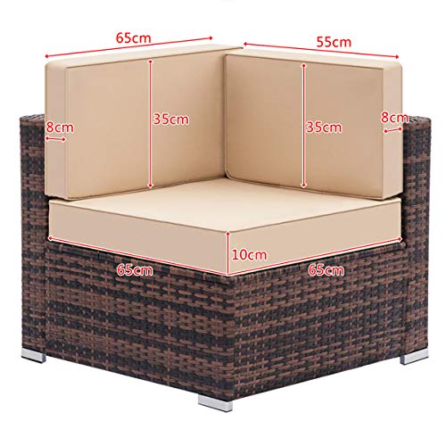 【Bequemes Sofagarnitur】3-tlg Polyrattan Geflecht Sitzgruppe ausgestattet mit 2 x Ecksofa, 1 x Couchtisch. Gartenlounge Set um Ihnen In Hülle und Fülle Platz zum Entspannen zu bieten. Sie können das Sofa nach Ihren Wünschen frei benutzen. In Hülle und Fülle Platzierungsmethoden eignen sich für verschiedene Räume. Genießen Sie den schönen Sonnen im Garten, auf der Terrasse oder im Pool und sich alias für Wohn- und Esszimmer im Innenbereich eignen, um Ihre Freizeit zu verbringen.