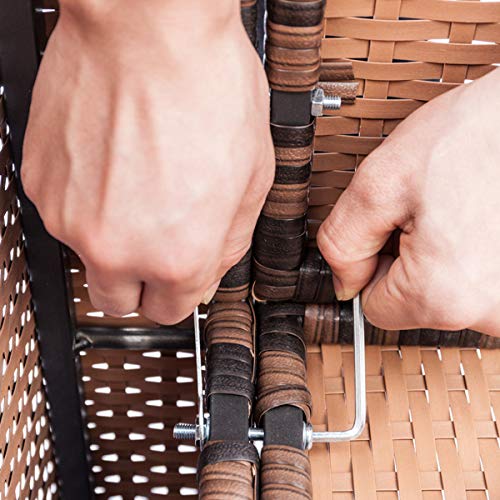 【Überlegene Materialien】Das Terrassenmöbelset besteht aus strapazierfähigem synthetischem Allwetter-PE-Rattan-Korbgeflecht, das haltbarer und langlebiger als herkömmliches Korbgeflecht ist. Dadurch hält dieses Gesprächsset Hitze und Wetter besser stand als ähnliche Rattan-Korbmöbel. Starker Stahlrahmen unterstützt Sofa mehr Stabilität und Gleichgewicht.