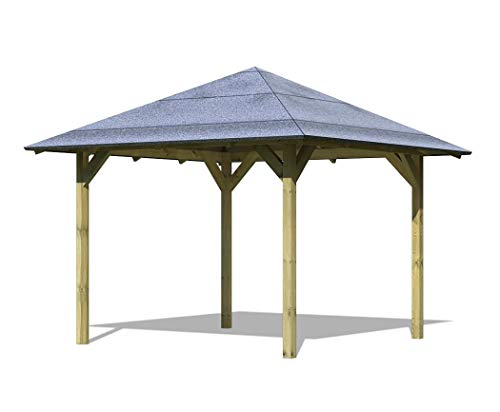 Karibu 4-Eck Pavillon ECO Sevilla. Pfosten ganz 9 x 9 cm starkem kesseldruckimprägniertem Nadelholz.