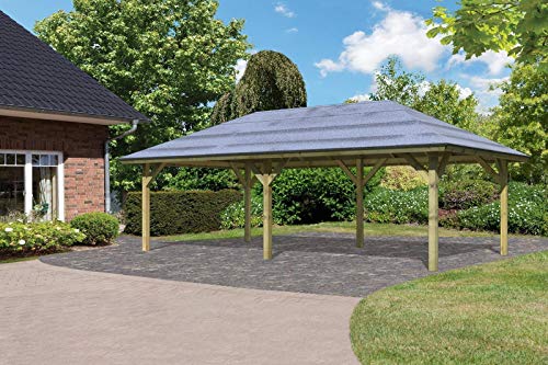 Karibu Pavillon-Carport Kirn 2. Pfosten jeder 12 x 12 cm starkem kesseldruckimprägniertem Nadelholz.