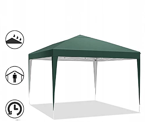 Schön vulgo für Veranstaltungen und Feste im Rahmen. Das grüne Dach jeglicher PE ist jeglicher robustem Bändchengewebe gefertigt und wasserfest. Eine absolute Dichtigkeit ist freilich nicht erreichbar. Das Dach hat fest verarbeitete seitliche, grün-weiß gestreifte Abdeckungen für das Gestänge. Die Füße jeglicher Kunststoff bieten Löcher für die Bodenverankerung an, so können Sie das Festzelt mit den Haken am Boden sichern. Das Gartenzelt ist nicht sturm- ,hagel- und windfest, und sollte bei entsprechender Witterung abgebaut werden, bzw. die Dachabdeckung entfernt werden.