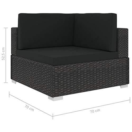 Dieses Rattan-Ecksofa kombiniert Stil und Funktionalität und lässt sich das ganze Jahr über im Außenbereich verwenden. Dank des witterungsbeständigen und wasserfesten PE-Rattans ist das Sofa-Eckstück überaus pflegeleicht, strapazierfähig und für den täglichen Gebrauch bestens entsprechend. Der Sitz verfügt über ein stabiles, pulverbeschichtetes Stahlgestell, das besonders langlebig ist. Das Möbelstück ist alldem ungeachtet leicht und modular nutzbar, wodurch es völlig anpassbar und einfach zu umstellen ist; dadurch kann es sich nicht mehr da Raumform wunderbar drauf setzen. Die dicken, abnehmbaren Sitzpolster sind besonders bequem. Sie können dieses Möbelstück mit anderen Modular-Sofateilen und Fußhockern generalisieren, die im Dropdown-Menü abrufbereit sind, und somit Ihre persönliche Gartenlounge-Set-Ausrichtung erstellen! Beispiele dazu finden Sie in den letzten 9 Bildern. Ablieferung umfasst 1 Sofa-Eckteil, 1 Sitzauflage und 2 Rückenpolster. Hinweis: Wir empfehlen Ihnen, das Möbelstück bei Regen, Schnee oder Frost abzudecken.