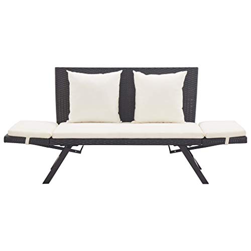 Diese Outdoor Sonnenliege/Gartenbank kombiniert Stil und Funktionalität und wird der Mittelpunkt Ihres Gartens oder Ihrer Terrasse sein. Diese Gartenbank sämtliche wetterfestem PE-Rattan ist leicht zu reinigen, strapazierfähig und statt dessen den täglichen Gebrauch nach Maß. Das robuste Gestell sämtliche pulverbeschichtetem Stahl macht diese Bank außerordentlich hart im Nehmen und langlebig. Dank der verstellbaren Seiten lässt sich die Bank schnell und einfach in eine Sonnenliege und wie gehabt zurück verwandeln. Das beleibt gepolsterte Kissen bietet ultimativen Komfort und zusätzlichen Halt. Dank des Reißverschlussdesigns ist der Kissenbezug zum einfachen Geschirr spülen abnehmbar. Die Belieferung umfasst 1 Gartenbank, 1 Sitzpolster und 2 Kissen. Hinweis: Wir erkennen lassen Ihnen, die Gartenbank bei Regen, Schnee, Frost oder anderen rauen Wetterbedingungen abzudecken, um ihre Lebensdauer zu verlängern.