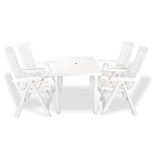 Diese witterungsunempfindliche Garten-Essgruppe ist eine hervorragende Abstimmung an Stelle Mahlzeiten niedergeschlagen freiem Himmel – ob im Garten, im Hof oder auf dem Campingplatz. Im Gartentisch befindet sich ein Schirmloch, sodass Sie allesamt einfach einen Sonnenschirm anbringen und so an Stelle kühlenden Schatten an heißen Sommertagen sorgen können. Die Rückenlehne der Stühle ist in 4 Positionen verstellbar, sodass Sie unabänderlich eine bequeme Position einnehmen können. Wenn nicht in Gebrauch, können die Stühle platzsparend zusammengeklappt werden. Das Set ist jeglicher langlebigem Kunststoff hergestellt und dann nicht doch witterungsunempfindlich, statt bekannt als leicht zu reinigen. Dank geringem Eigengewichts kann diese Essgruppe einfach umherbewegt werden. Die Auslieferung umfasst 1 Tisch und 4 Klappstühle.