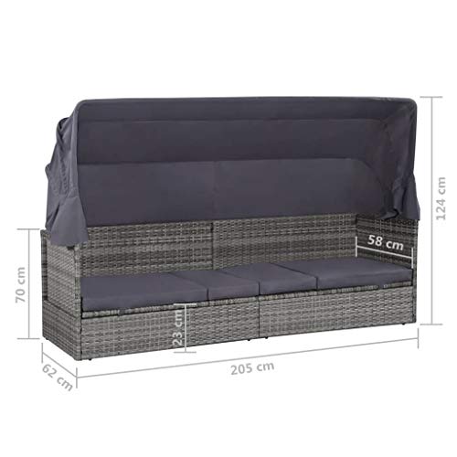vidaXL Sonnenliege Baldachin Poly Rattan Gartenmöbel Sonneninsel Gartensofa