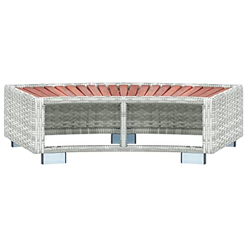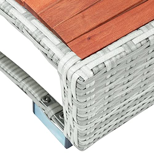 Farbe: Hellgrau; Material: Pulverbeschichteter Stahl, PE-Rattan, tropisches Eukalyptus-Hartholz mit natürlichem Ölfinish; Abmessungen: 92 x 45 x 25 cm (L x B x H)