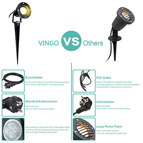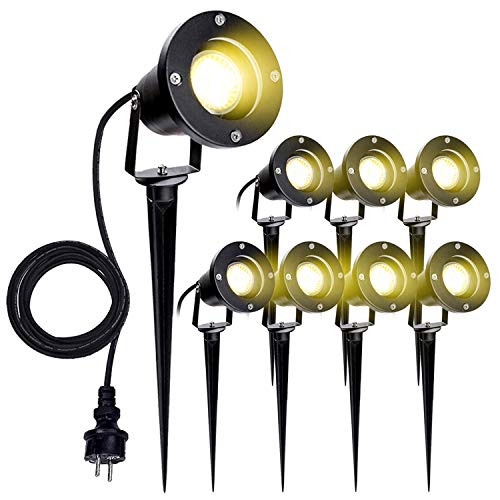VINGO 8 Stück Gartenstrahler mit Erdspieß, 4w GU10 LED Warmweiß Gartenbeleuchtung mit Stecker, IP65 Wasserdicht Aussen…