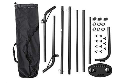 ✔️ ABMESSUNGEN & INHALT Maße des Gestell: Länge:290 cm bis 330 cm. Fußbreite: 100 cm. Höhe 110 cm. Rohrdiameter ø 42cm. Aufbewahrungstasche. Gebrauchsanleitung auf Deutsch.