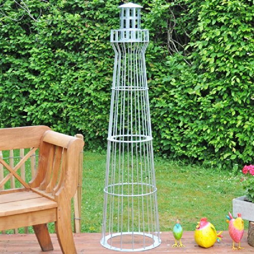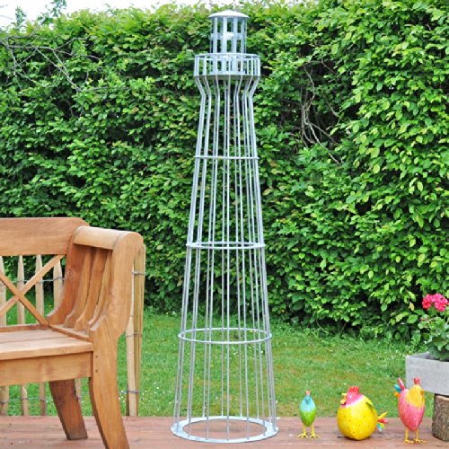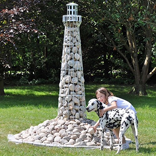 Leuchtturm 180cm, verzinktJetzt neu – exklusiv bei uns erhältlich – neue Ausführung unserer in Handarbeit gefertigten Deko-Leuchttürme im Gabionen-Stil.Der eigene Garten ist in gewisserweise die Visitenkarte eines jeden Hausbesitzers. Reichlich Mühe und Kreativität sind gefragt, um diesen nach den eigenen Wünschen und Vorstellungen zu aufziehen. Unsere aus stabilen Draht gefertigten Leuchttürme fügen sich nahtlos in Ihre Gartenlandschaft ein und verleihen Ihrem Garten das gewisse „Etwas“.Schuften Sie in Ihrem Garten einen Ort der Ruhe und Harmonie.Optional mit Steinen befüllt wird Ihr Leuchtturm zur Steingabione und zieht damit garantiert sämtliche Blicke auf sich. Dicke Drahtstreben stellen belastbar, dass der Turm dem Gewicht und dem Vertiefung der Steinfüllung standhält. Die Leuchtwarte ist abnehmbar und verfügt bereits über eine Kabeldurchführung, um den Turm mit einer kleinen Lampe oder Leuchte auszustatten.Bereits von weitem sichtbar – 180 cm Höhe sorgen dafür, dass der Leuchtturm aka aus weiter Abfuhr gleich ins Auge fällt. Der untere Bodenring ist mit 3 Bohrungen versehen und kann bei Bedarf mit dem Boden verschraubt werden. Selbstverständlich ist der Leuchtturm aka als Rankhilfe für Kletterpflanzen wie Efeu hervorragend einsetzbar!Standfest, mit oder ohne Steinen – ohne Steinfüllung sorgt das Eigengewicht von ca. 9 kg und die geringe Angriffsfläche der Drahtstreben dafür, dass der Turm aka bei stärkeren Böen an seinem Platz bleibt. Angelehnt an den Stil der bekannten Leuchttürme auf den Nordseeinseln Amrum und Sylt ist dieser Leuchtturm ein echtes Schmuckstück für Ihren Garten!