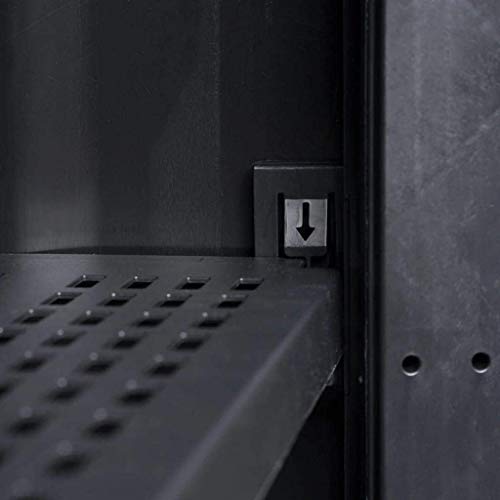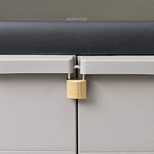 Der Gartenschrank kann via einem Vorhängeschloss zugunsten Option Sicherheit separat werden (das Schloss ist nicht im Lieferumfang enthalten).
