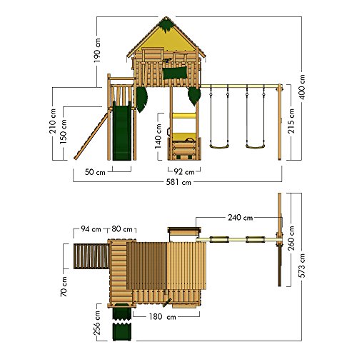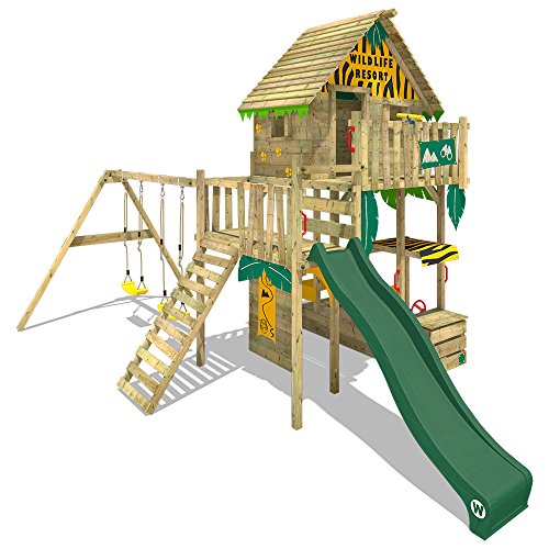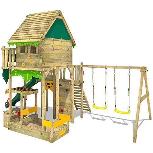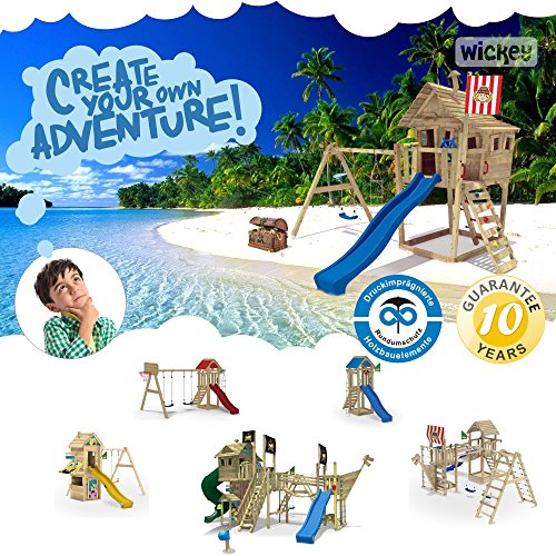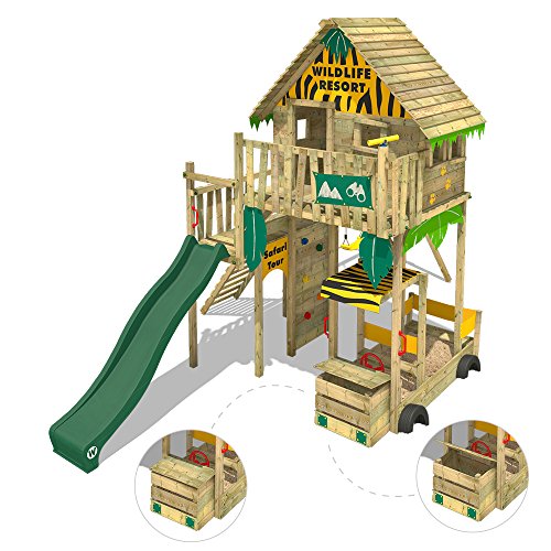 WICKEY Kletterturm für Kinder mit verschiedenen Podesthöhen, Sandkasten, Doppelschaukel und Rutsche