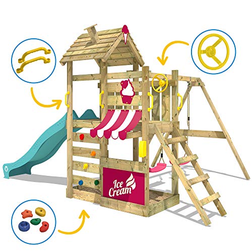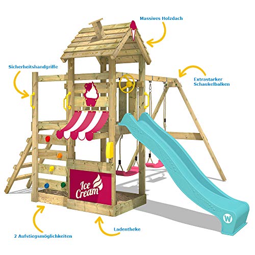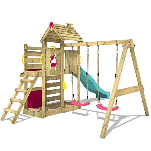 WICKEY Spielturm Klettergerüst CherryFlyer mit Schaukel & türkiser Rutsche, Kletterturm mit Sandkasten, Leiter & Spiel…