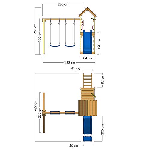 WICKEY Spielturm inkl. komplettem Zubehörset durch Holzdach, Schaukel, Rutsche und extrabreitem Podest
