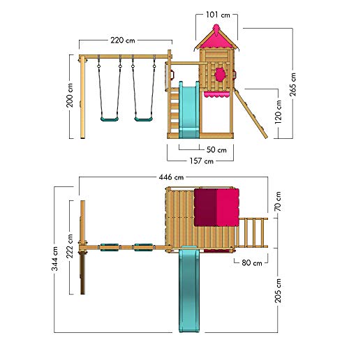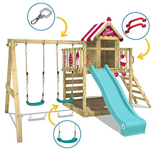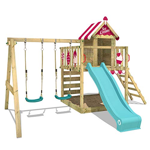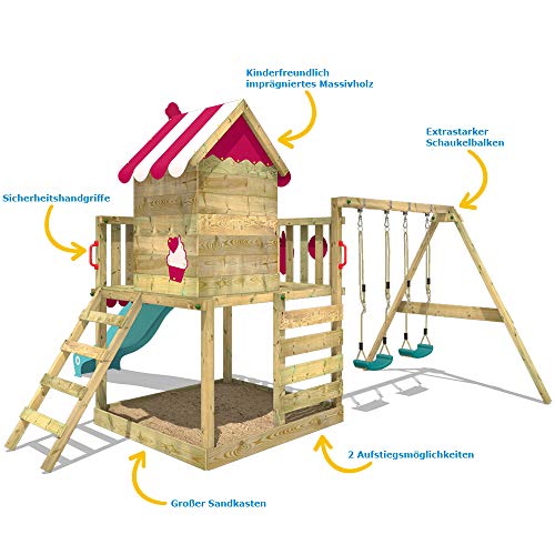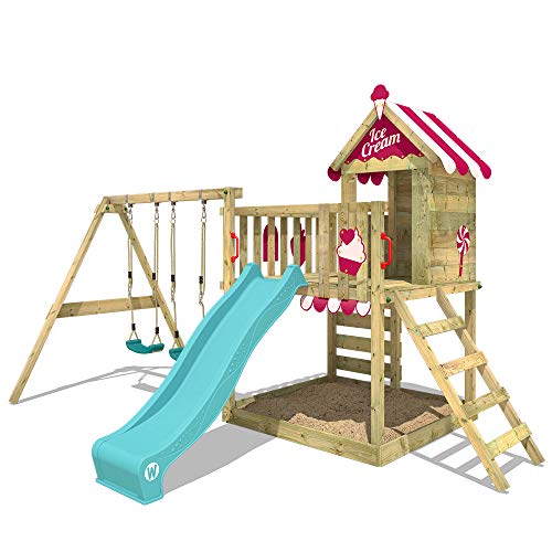 WICKEY Spielturm Klettergerüst Smart Candy mit Schaukel, Pinker Plane & türkiser Rutsche, Outdoor Kinder Kletterturm mit…