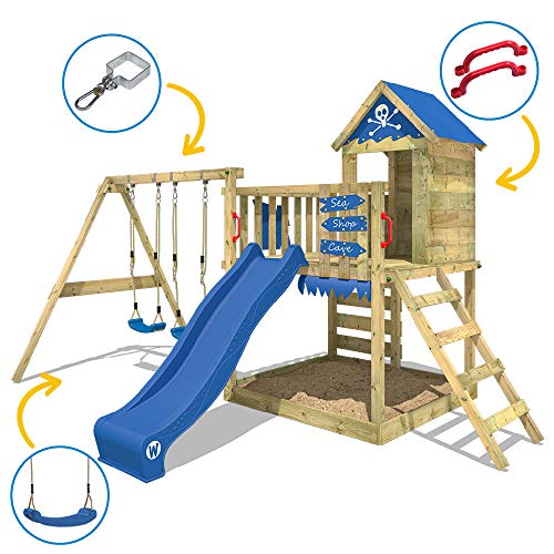 WICKEY Spielturm Klettergerüst Smart Cave mit Schaukel & roter Rutsche, Outdoor Kinder Kletterturm mit Sandkasten…