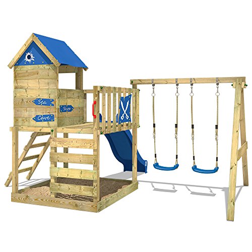 Kinder-Kletterturm für den Garten mit großem Sandkasten und Doppelschaukel