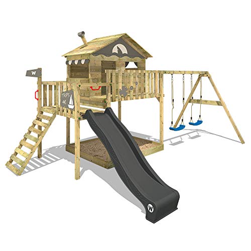 Spielhaus mit Wellenrutsche, Schaukel, großem Sandkasten, Kletterleiter, Abzug & Sicherheitsgriffen – Smart-Folge
