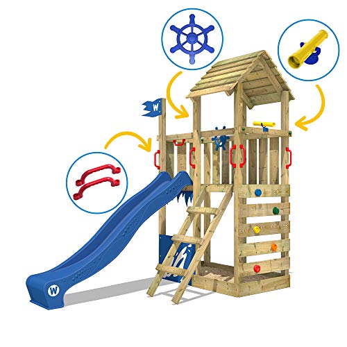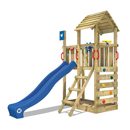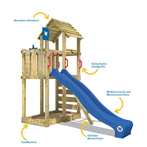 Kletterturm mit Wellenrutsche, großem Spiel-Podest & Sandkasten, Kletterleiter, Lenker, Teleskop & Sicherheitshandgriffen – Smart-Aufeinanderfolge