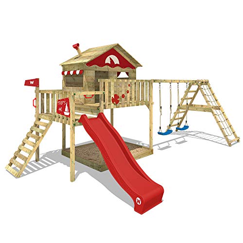 WICKEY Spielturm Klettergerüst Smart Ocean mit Schaukel & roter Rutsche, Outdoor Kinder Kletterturm mit Sandkasten…