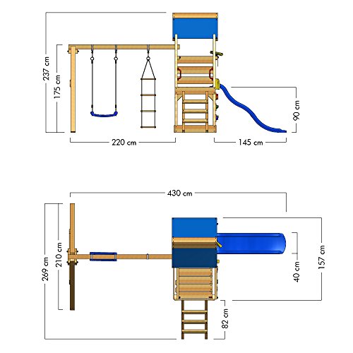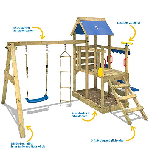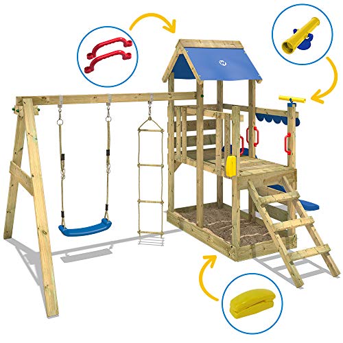 WICKEY Klettergerüst mit Rutsche, Schaukel, Strickleiter, Kletterwand und viel Spielturm-Zubehör – Podesthöhe 90cm