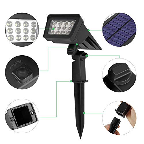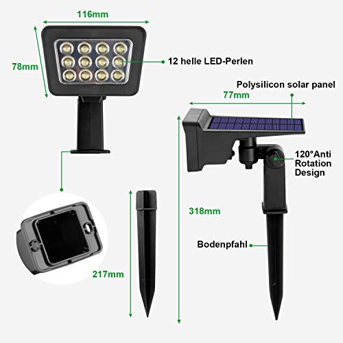 Wilktop Gartenbeleuchtung Solarleuchte Garten,Solarstrahler Gartenleuchte Außen Superhelles 12 LEDs Solar Integrierte…