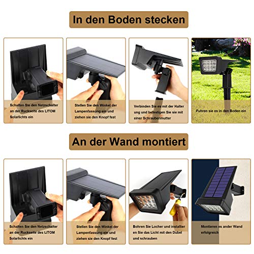【In2 in 1 Solarleuchten im Freien】Es kann an den Boden angeschlossen oder an der Wand installiert werden. Zwei Verwendungsmethoden können den Anforderungen verschiedener Anlässe gerecht werden. Die Installation ist einfach, Solarladung, keine Stromrechnung und keine Verkabelung erforderlich.
