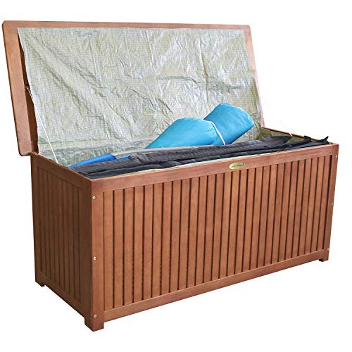 Wohaga® Hartholz Auflagenbox Kissenbox Gartenbox Auflagentruhe geölt inkl. Innenfolie 133x58x55cm