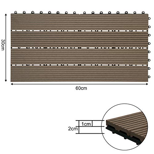 WOLTU WPC Terrassenfliesen Terrassendielen Holz-Optik 30x60cm, Fliese Bodenfliese Klickfliese mit klicksystem Bodenbelag…