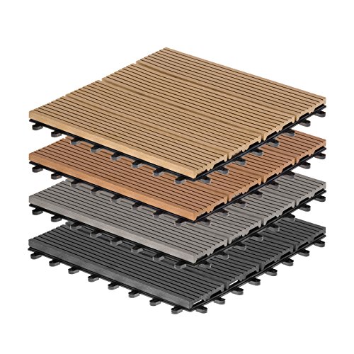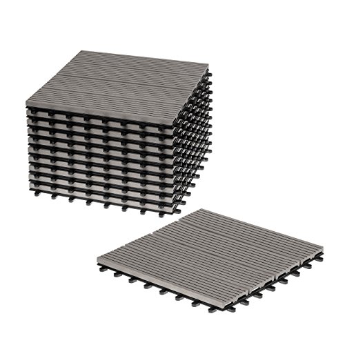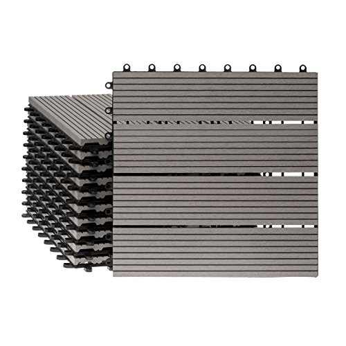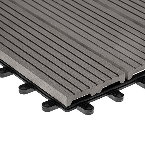Ventanara® WPC Holz Kunststoff Fliesen Terrassenfliesen Klickfliesen Balkonfliesen 11 Stück = 1m² (30 x 30 cm, Grau Standard)