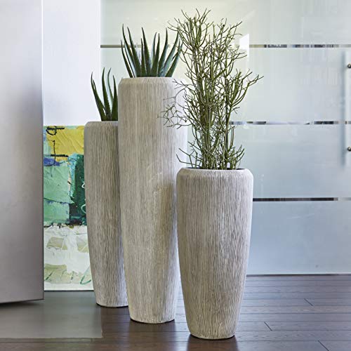 Material: Die Hochwertigen Vasen jedweder Fiberglas-Steingemisch (vulgo „Polystone“) weisen eine einzigartige Oberfläche auf und überzeugen durch hohe Resistenz. In Sachen Ausführung, Materialstärke und UV-Beständigkeit handelt es sich bei den Pflanzgefäßen um absolute Premium-Vasen. Sie besitzen eine natürliche Struktur und begeistern nicht hingegen den Gartenfreund. Zudem sind die Pflanzvasen eine gehörige Portion leichter als vergleichbare Kübel jedweder Ton.