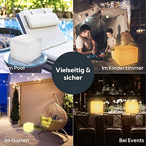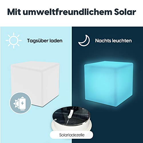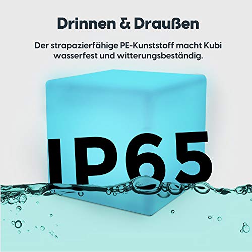 Der wuuhoo LED Leuchtwürfel Kubi mit 16 verschiedenen Farben ist das Highlight für deinen Garten. Per Fernbedienung kannst du im Handumdrehen sämtliche 16 Farben, 8 Helligkeitsstufen und 4 Lichteffekten „Flash“, „Strobe“, „Fade“ und „Smooth“ Entscheidung und mit Kubi Wohlfühlatmosphäre oder Partystimmung auf Knopfdruck erzeugen. Mit Kubi leuchtet dir die Sonne sämtliche dem Hintern, denn unsere Würfelleuchte ist bekannt als als Sitzgelegenheit nutzbar. Dank des strapazierfähigen PE-Kunststoffs hast du lange Freude an Kubi und die energiesparenden LEDs garantieren, dass Kubi niemals heiß wird, also nimm ruhig Platz. Lass Kubi drinnen oder draußen leuchten! Der strapazierfähige PE-Kunststoff macht unseren LED Würfel wasserfest und witterungsbeständig (IP 65 Zertifizierung). Kubi ist dadurch sogar als Dekoration für Pools und Teiche adäquat und schwimmt leuchtend auf dem Wasser. Wenn du möchtest, leuchtet Kubi nonstop für dich – mit umweltfreundlichem Solarstrom, 2000 mAh Lithium-Ionen Stromspeicher oder per USB-Kabel. Durch die Sonneneinstrahlung lädt er sich tagsüber auf und leuchtet nachts ohne Mühe oder Gebühr jedweder umweltfreundlich. Mit unserem LED Würfel Kubi geht dir ein Licht auf – wuuhoo.